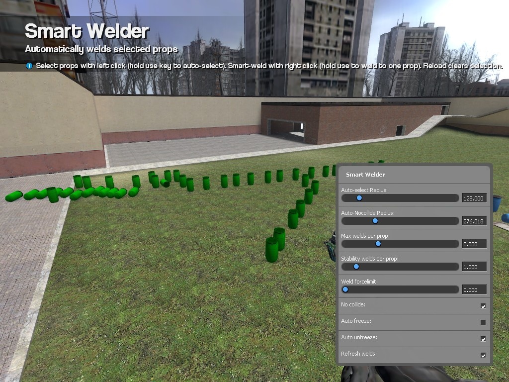A tool for GMod10 which takes the drudgery out of welding large contraptions and forts.